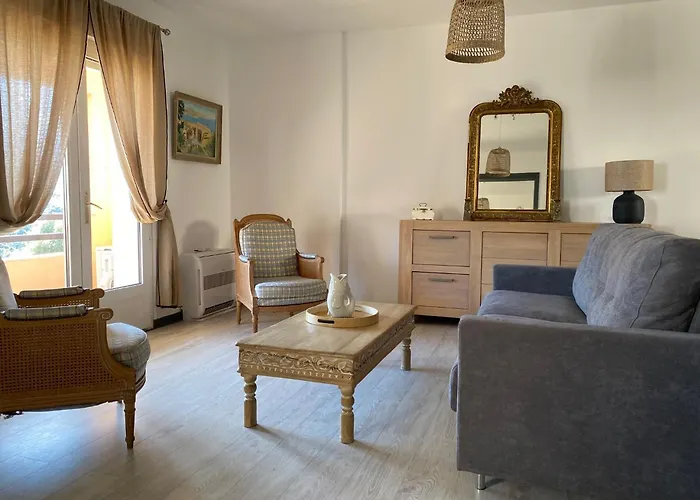 Semaphore Grand T3 Proche Centre Ville设有大厨房和配阳台,沙发 和咖啡机/煮茶器的客房. Plage de Bodri和Musee Prive Guy Savelli距离公寓不到1.8公里和2.6公里.